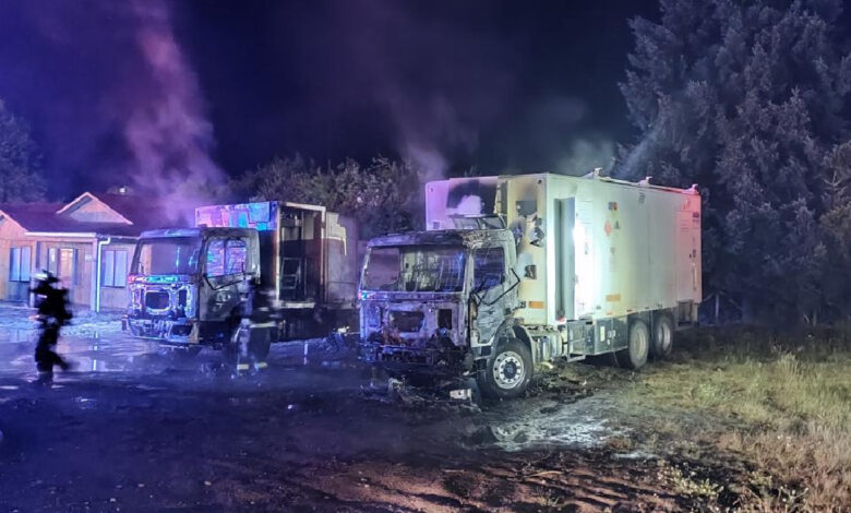 Los vehículos, que prestaban servicios a la compañía Arauco, estaban estacionados en la hostería Maricel cuando ocurrió el ataque.